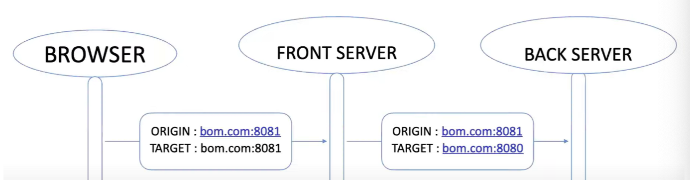 프론트 프록시 서버에서 백엔드 서버 간의 출처를 조율해주는 것이다