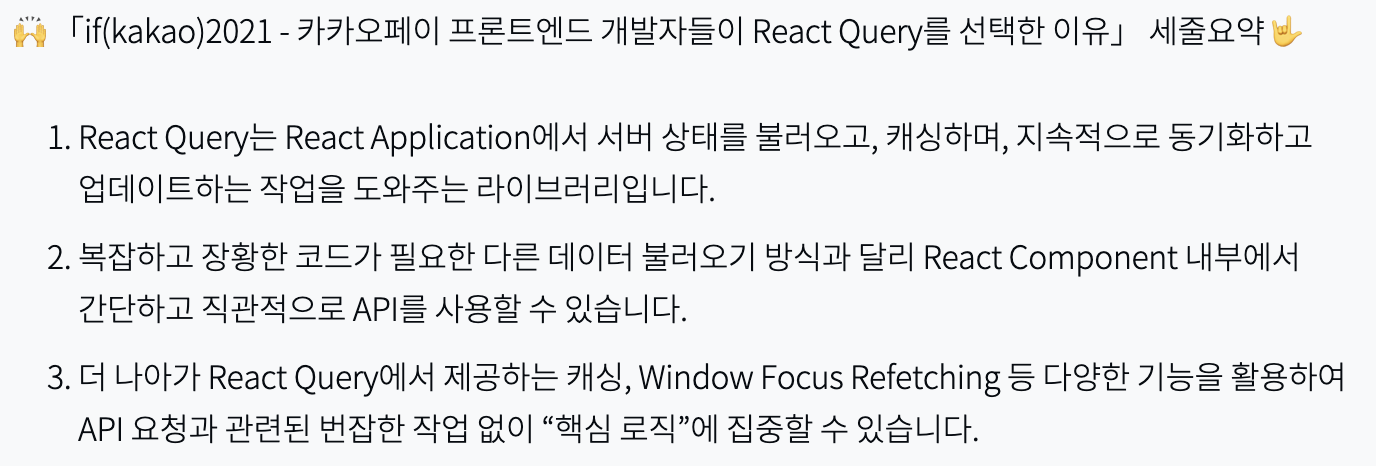 ➡️ React-Query를 활용해 비동기 데이터를 불러오는 과정 중 발생하는 문제들을 해결해줌